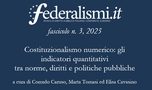 I contributi ospitati in questo fascicolo di Federalismi rappresentano la prima pubblicazione monografica elaborata nell’ambito del P.R.I.N. 2022 intitolato «Il Governo dei numeri. L’impatto degli indicatori quantitativi sull'ordinamento costituzionale: norme, diritti, politiche pubbliche e sindacato giurisdizionale», condotto dalle Università di Bologna, Trento e Palermo. È ormai inclinazione diffusa catalogare fatti naturali o comportamenti umani sulla base di indicatori quantitativi, assecondando un processo di quantificazione dei fenomeni sociali. Nonostante tali tendenze, è ancora scarsamente indagato, quanto meno dalla dottrina italiana, il rapporto tra indicatori, diritto e politiche pubbliche. In prima approssimazione, possono definirsi “indicatori” gli strumenti in grado di misurare l'andamento di un fenomeno non osservabile... (segue)