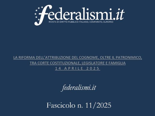 Il saggio indaga la recente giurisprudenza costituzionale in tema di attribuzione del cognome ai figli nella prospettiva del rapporto dialogico tra Corte costituzionale e Parlamento. Dopo aver svolto una breve ricostruzione del percorso giurisprudenziale che ha portato alla sent. n. 131... (segue)